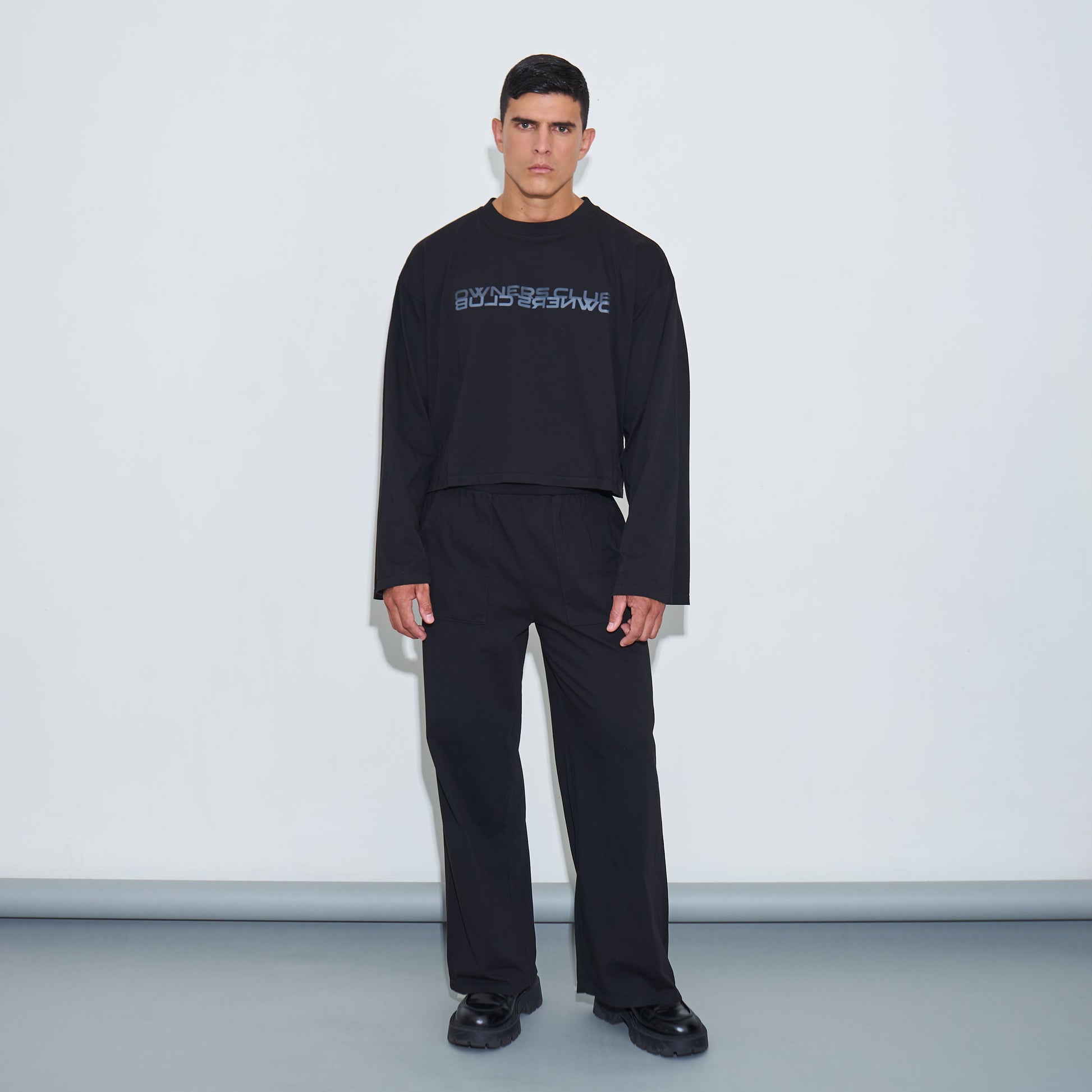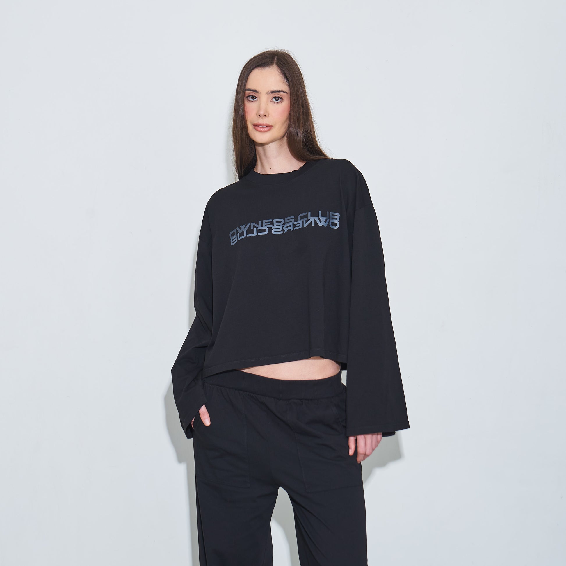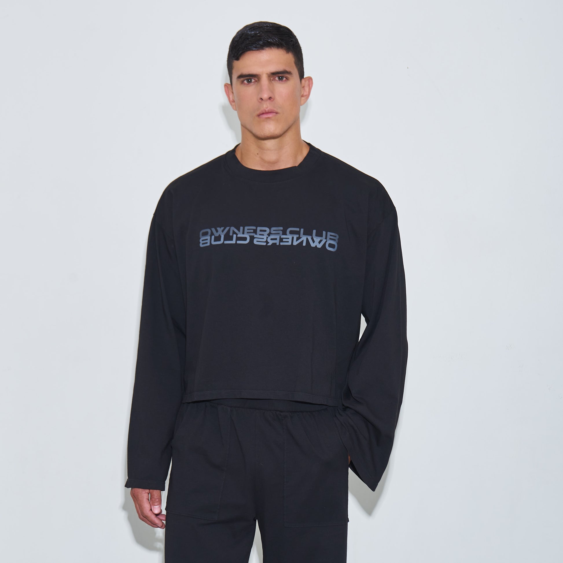 Camiseta manga larga oversize con estampacion delantera y aplique rubber